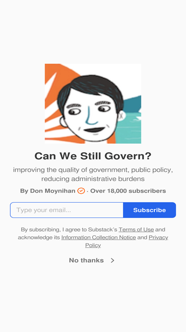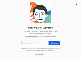 59%improving the quality of government, public policy, reducing administrative burdens. Click to read "Can We Still Govern?", by Don Moynihan, a Substack publication with tens of thousands of subscribers.