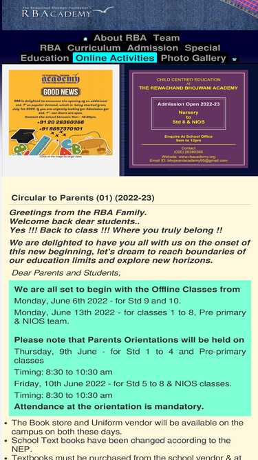 100%the rewachand bhojwani academy (rba) has pre-primary, primary & secondary section. the students in standard 10 can appear for national open school examination(nos)