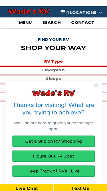 80%wade's rv is oklahoma's largest rv dealer in oklahoma, new & used rv sales - serving the community for over 30 years! take advantage of our full-service center, parts & accessories store, and financing. consignments are welcome. 200+ new & used trailers. full service center. oklahomas only newmar dealership.