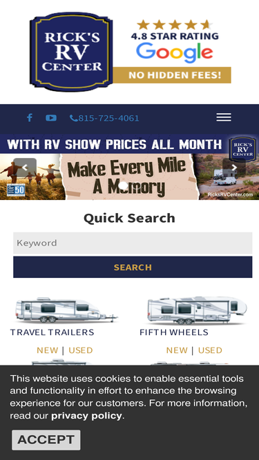 100%Rick's RV respects the privacy of our customers. The following privacy statement outlines what information we collect from our visitors, who has access to that information and how we utilize it. Rick's RV is the sole owner of all information collected on
