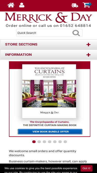 merrick & day - order online all your curtain making sundries, linings and interlinings, roman blind kits, tracks, poles, cushion pads, brassware and accessories direct as well as merrick & day’s renowned curtain-making books.