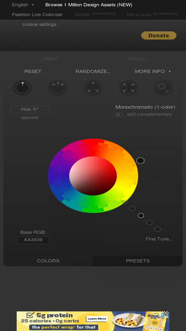 75%профессиональное онлайн приложение для подбора цветов и генерации цветовых схем. использование палитры на цветовом круге позволяет подобрать сочетание цветов по всем правилам колористики и цветовой гаммы.