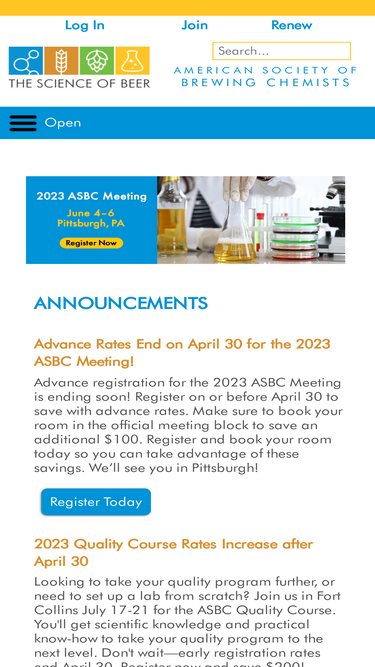 75%...ANNOUNCEMENTS Join the Research Council The newly formed ASBC Research Council aims to fund scientific projects related to the brewing and/or allied industries. The Research Council will be composed of members from the ASBC Board of Directors and from members of companies providing supporting fun...