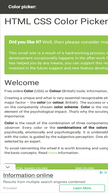 74%Explore HTML and CSS color names with HEX, RGB, and HSL codes. Preview colors, generate palettes, check contrast, and improve your web design.