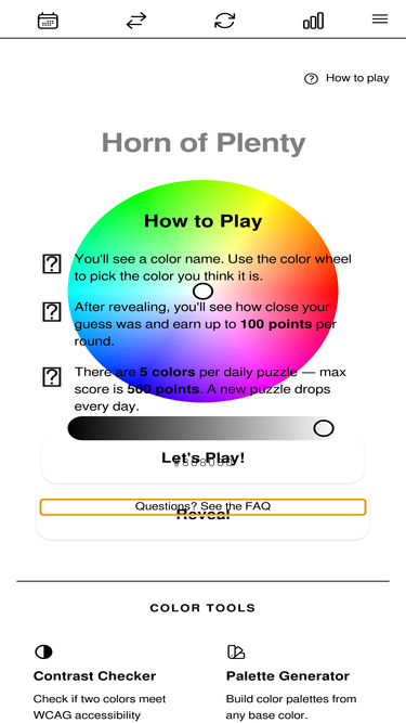 92%You are given a color name and have to guess how it looks like. The closer your guess is the more points you collect.