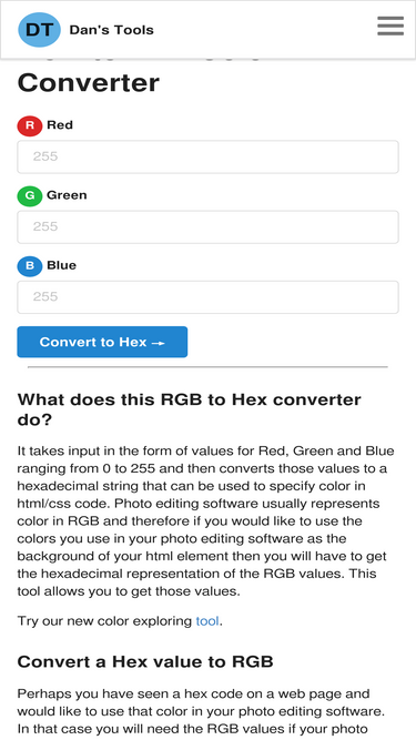 90%Convert RGB color codes to HEX HTML format for use in web design and CSS. Also converts RGBA to HEX.