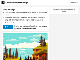 76%Select an image and find the color code (Hex / RGB / HSL) of any pixel in it in one click. Works on both desktop and mobile.