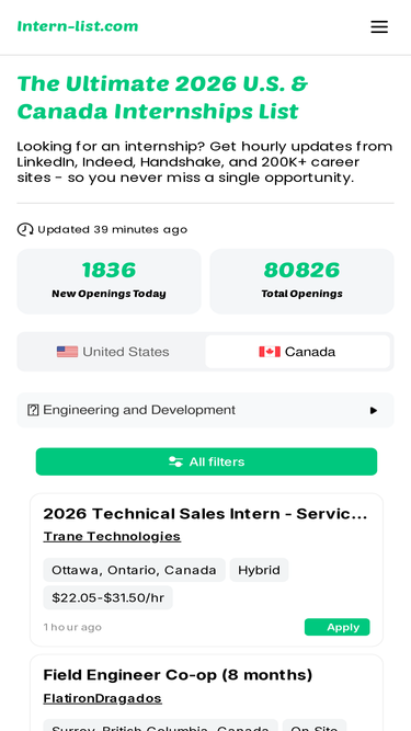 95%Discover daily updated internship jobs from top U.S. companies. Find the newest opportunities and start your career with the freshest listings available.