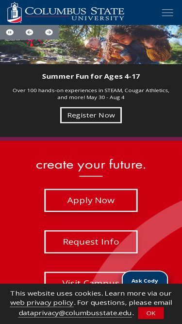 A community college in Columbus, Ohio. You can earn a two-year technical degree, or complete the first two years of your bachelor's degree. We also offer noncredit training, ESL and other services. With an open enrollment policy and the lowest tuition cost in the area, Columbus State is where the world is going.