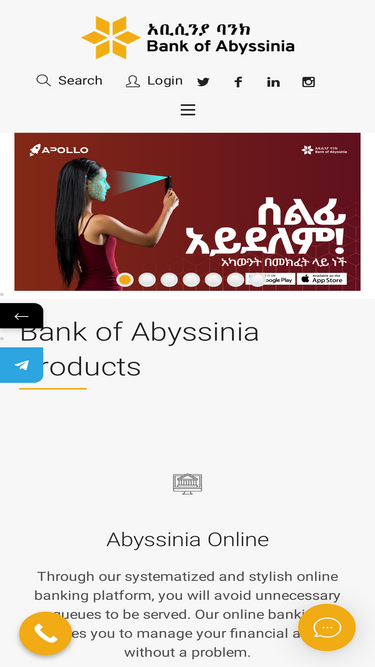 100%Bank of Abyssinia's ecommerce payment gatway allows you to execute your ecommerce plans across borders. visa card Mastercard....