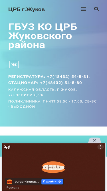 81%информация о графике работы, предоставляемых услугах, контактных телефонах гбуз ко "црб жуковского района" для жителей г.жуков и жуковского района