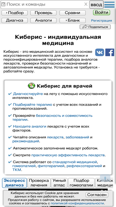 89%Selection of treatment and diagnostics using artificial intelligence. All medicine in one place - more than 40,000 drug descriptions and diagnoses.