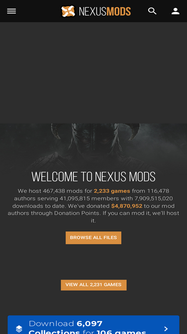 72%We host 737,890 mods for 3,886 games from 163,483 authors serving 65,296,108 members with 17,636,711,914 downloads to date. We've donated $13,380,224 to our mod authors through Donation Points. If ...