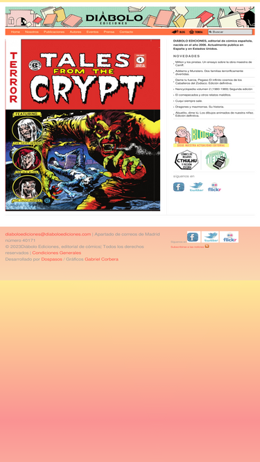 100%diábolo ediciones, editorial de cómics española. actualmente publica en españa y en estados unidos. especializada en cómic, novela gráfica, libro, ilustración, tebeo, comic de autor y revista del género fantástico y de terror, como chutlhu y prótesis.