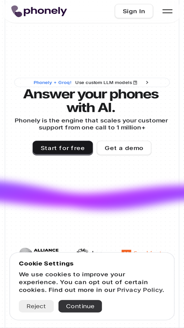98%Phonely lets businesses answer phones with AI. Build a lifelike AI agent that answers your phone, connects to your calendar in seconds. Trusted by 5000+ businesses around the world.