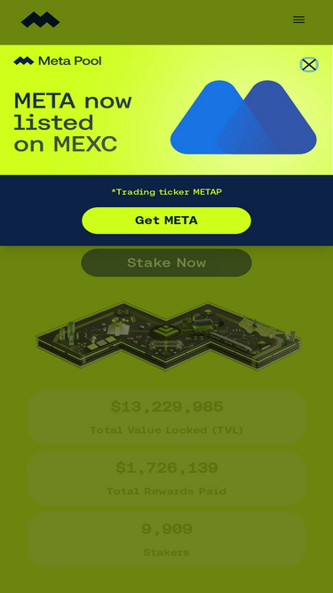 91%liquid stake near with meta pool. receive stnear to simultaneously accrue near staking rewards and add apy from other defi protocols