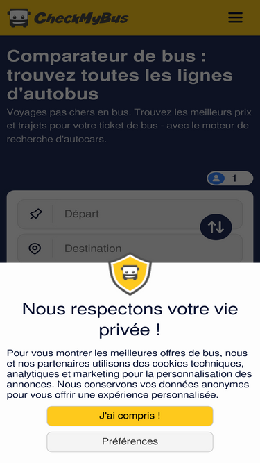 85%checkmybus est le moteur de recherche pour les bus longue distance. compare les prix et les horaires de milliers d'entreprises de bus et réserve ton billet de bus en ligne.