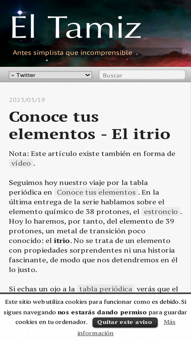 83%bienvenido el tamiz es una página de divulgación científica que intenta hacer llegar la ciencia a todos siguiendo el lema “antes simplista que …