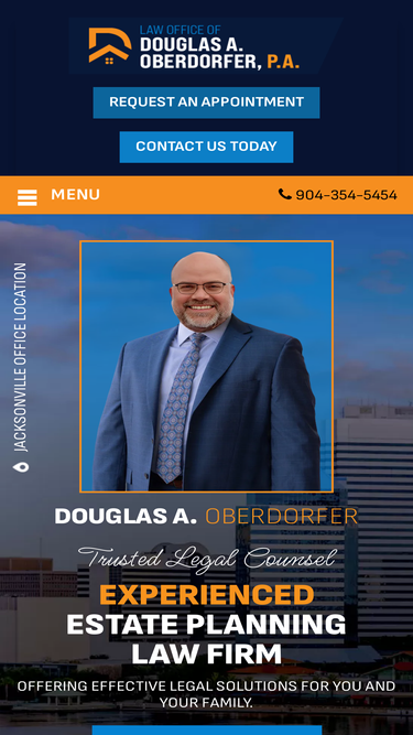 89%Legal Solutions For You And Your Family Douglas A.Oberdorfer Contact Me: (904) 638-5862 Email me Practice Areas: Estate Law Probate Law Will and Trust Law Biography I started the Law Office of Douglas A. Oberdorfer, P.A. in 2003 after the unexpected death of my father. His clients were looking for help and I wanted to