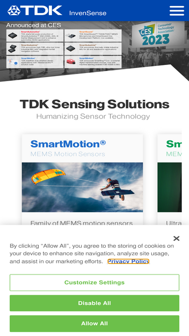 87%TDK InvenSense provides world-leading MEMS sensors and magnetic sensor solutions for consumer and automotive applications that require precision and low power