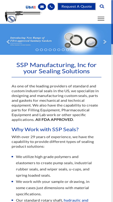 87%ssp manufacturing inc. provides fda approved industry-grade custom seals, gaskets and parts to meet various application requirements. we offer oem seals & components.