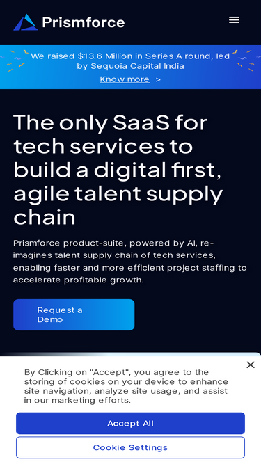 81%Prismforce delivers talent supply chain software for tech companies, helping businesses streamline hiring, manage workforce skills, and drive innovation efficiently.