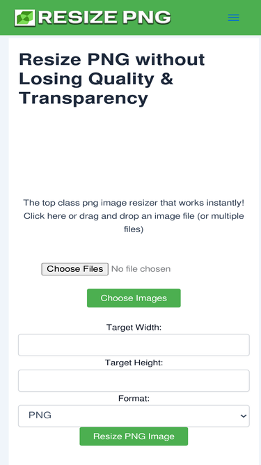 Resize png without losing quality instantly, just upload single or multiple images, enter width & height in pixel , select desired format & download