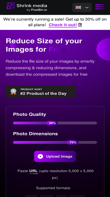 78%Cambia el tamaño de las imágenes PNG, JPEG, WebP y HEIC online en segundos de forma sencilla con Shrink Media. Reduce el tamaño comprimiendo y reduciendo inteligentemente las dimensiones de la imagen.