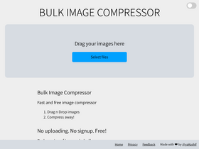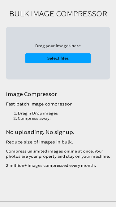 86%Bulk Image Compressor online. Quickly compress unlimited images in bulk online. No uploading. No Signup. Fast batch compress