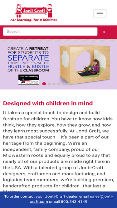100%since 1979, jonti-craft has been the leading manufacturer of children's furniture. our 3,500+ pieces create spaces that engage, inspire, and protect young learners.