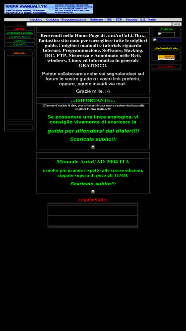 Manuali, guide e tutorials riguardo Internet, Programmazione, Software, IRC, FTP, Hacking, Cracking, PreHacking, Security, Anonimato, windows, linux ed informatica in generale