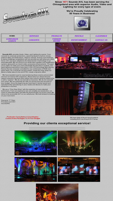 Chicagolands Full Service Audio Video Lighting Production Company. Quality, Reliable Service. Specializing in Audio Sound Systems, Intelligent Movers & LED Lighting, Projection Video, Fiber Optic Curtain, Pipe & Drape. Wireless Systems. SLS. Line Array