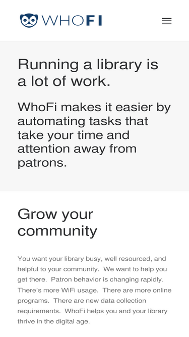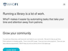 79%WhoFi provides libraries with software and services to gather WiFi sessions, promote programs, manage their meeting rooms, and more.