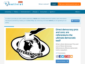 Netivist promotes critical thinking and social impact through public deliberation. Controversial debate topics, pros and cons, polls and knowledge sharing.