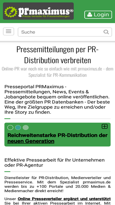 35%mit dem online pr spezialist prmaximus.de werden bis zu +100 portale und 20.000 medien + medienmacher direkt erreicht. jetzt pressemitteilung versenden