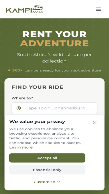 Rent campers and RVs across South Africa. Explore the open road with Kampi - your trusted camper rental marketplace.