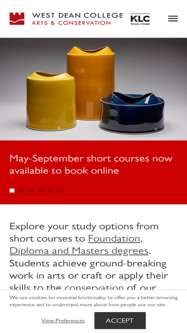 66%west dean, with campuses in west sussex and london, offers diplomas, foundation degrees, masters and short courses in arts, design, craft and conservation.