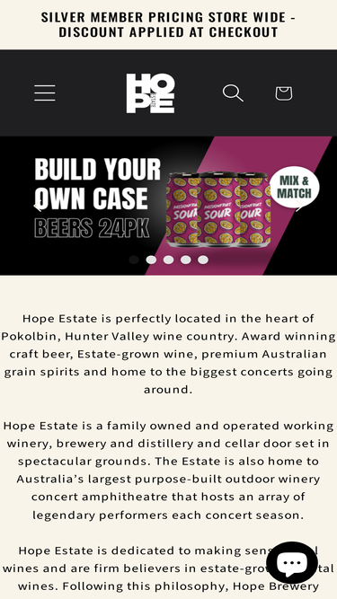 100%Hope Estate is perfectly located in the heart of Hunter Valley wine country. Award winning craft beer, Estate-grown wine, premium Australian grain spirits and home to the biggest concerts going around.