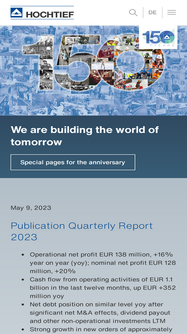 HOCHTIEF has a unique and well-balanced business profile in terms of cash flow visibility, capital intensity and margins.