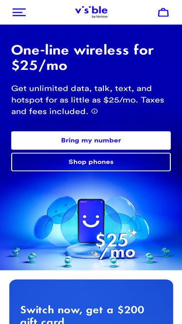 76%visible offers unlimited data, talk and text for $25/month powered by verizon. check out our plans, deals, and devices today.