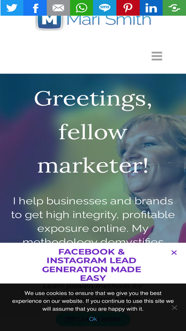 100%Mari Smith International, Inc. Privacy Policy This Privacy Policy describes how your personal information is collected, used, and shared when you visit or make a purchase from https://marismith.com (the “Site”). PERSONAL INFORMATION WE COLLECT When you visit the Site, we automatically collect certain information about your device, including information about your web browser, IP address,…