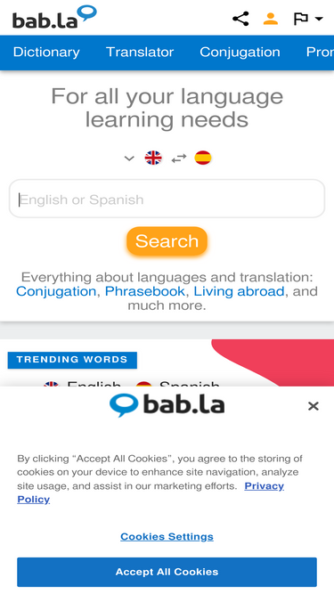 english dictionary and translation search with 1,000,000,000 example sentences from human translators. languages: english, german, french, spanish, and portuguese