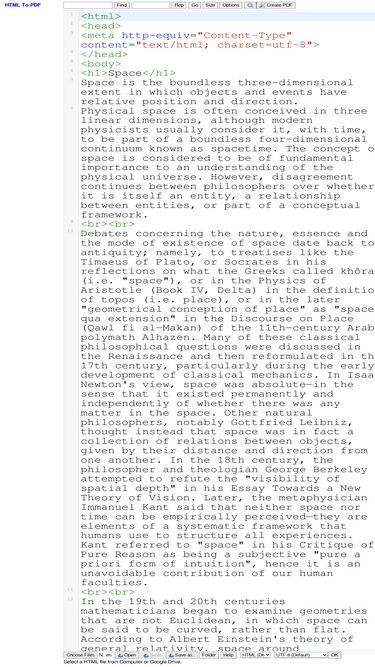 53%Get a HTML text and generate a PDF file to make it printer-friendly. Convert raw HTML to PDF. You can easily view or edit your HTML file, you can also use it as HTML reader to open a raw HTML file.