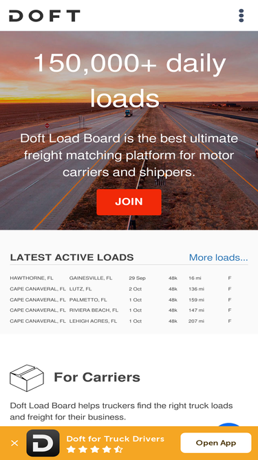 89%doft is free load board for carriers, dispatchers, truck drivers, brokers and shippers.