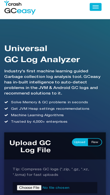 87%free online java gc log analyzer. analyze jvm, android, node.js garbage collection logs. troubleshoot long gc pause, memory leak, outofmemoryerror. java gc tuning, memory settings tunning made easy