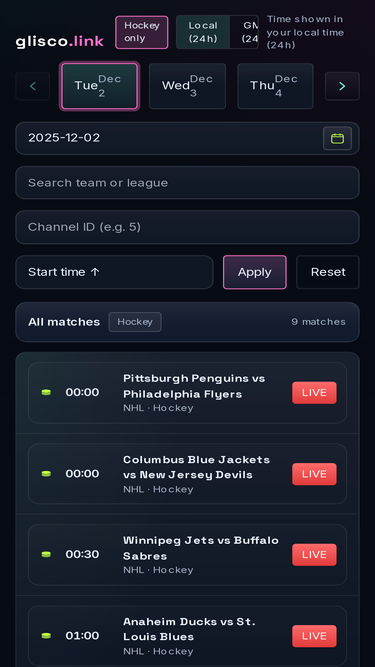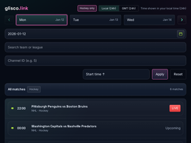 95%Live hockey streams with an Aurora Neon theme: schedules, channels, live status.