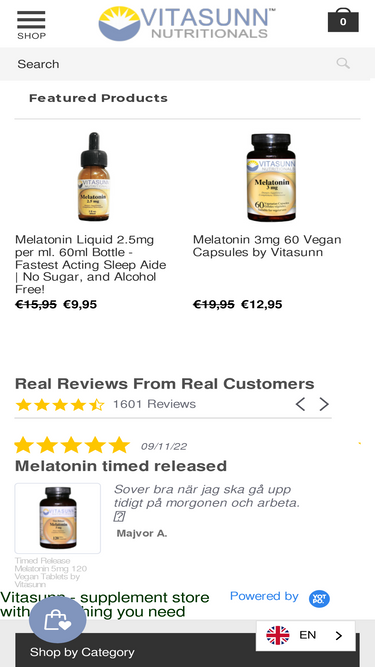 87%This is a 100% pharmaceutical grade product proven to aid in normal sleep patterns. The capsules completely dissolve in under 30 minutes and promote a full night of comfortable sleep. Vitasunn melatonin contains the purest, pharmaceutical grade melatonin. More than just the active ingredient: Vitasunn Melatonin contains ABSOLUTELY NO Yeast, Wheat, Corn, Milk, Egg, Soy, Glutens, Artificial Colors or Flavors, or Preservatives. Vitasunn stands behind our Melatonin 100%. Experience the difference for yourself!