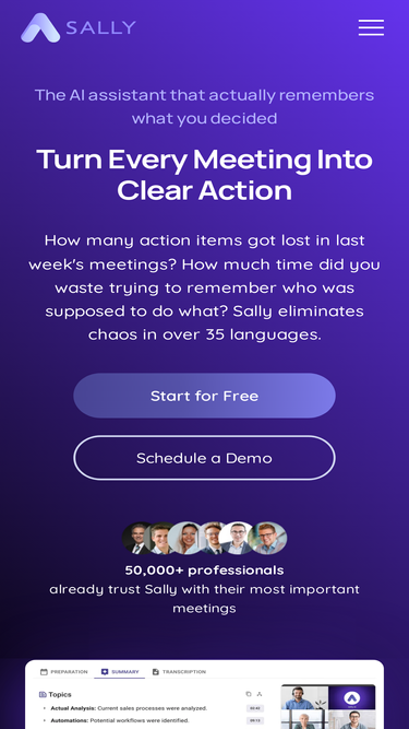 92%By inviting Sally to calls, structured notes with precise summaries are created automatically.