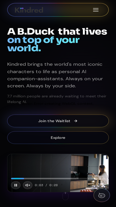88%Kindred builds AI companions around the characters you already love. The smarter, warmer, more human future of personal AI.