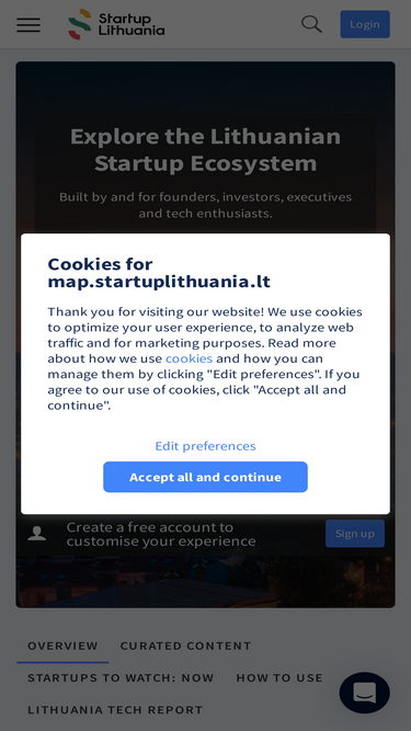 the map shows startups, scaleups and investors in the lithuania. you can explore lists and see in-depth information. powered by dealroom.co